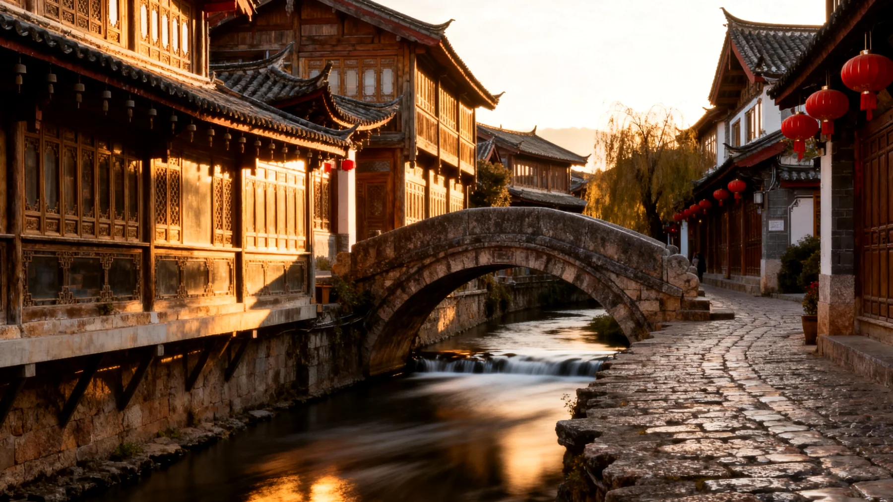 Das historische Zentrum von Lijiang ist ein Labyrinth aus engen Gassen, kleinen Plätzen und über 350 Brücken, die unzählige Kanäle überspannen. Anders als in vielen touristischen Altstädten pulsiert hier noch echtes Leben. Einheimische waschen ihr Gemüse in den klaren Wasserläufen, ältere Naxi-Frauen tragen ihre traditionelle blaue Kleidung, und aus kleinen Werkstätten dringen die Klänge handwerklicher Arbeit.